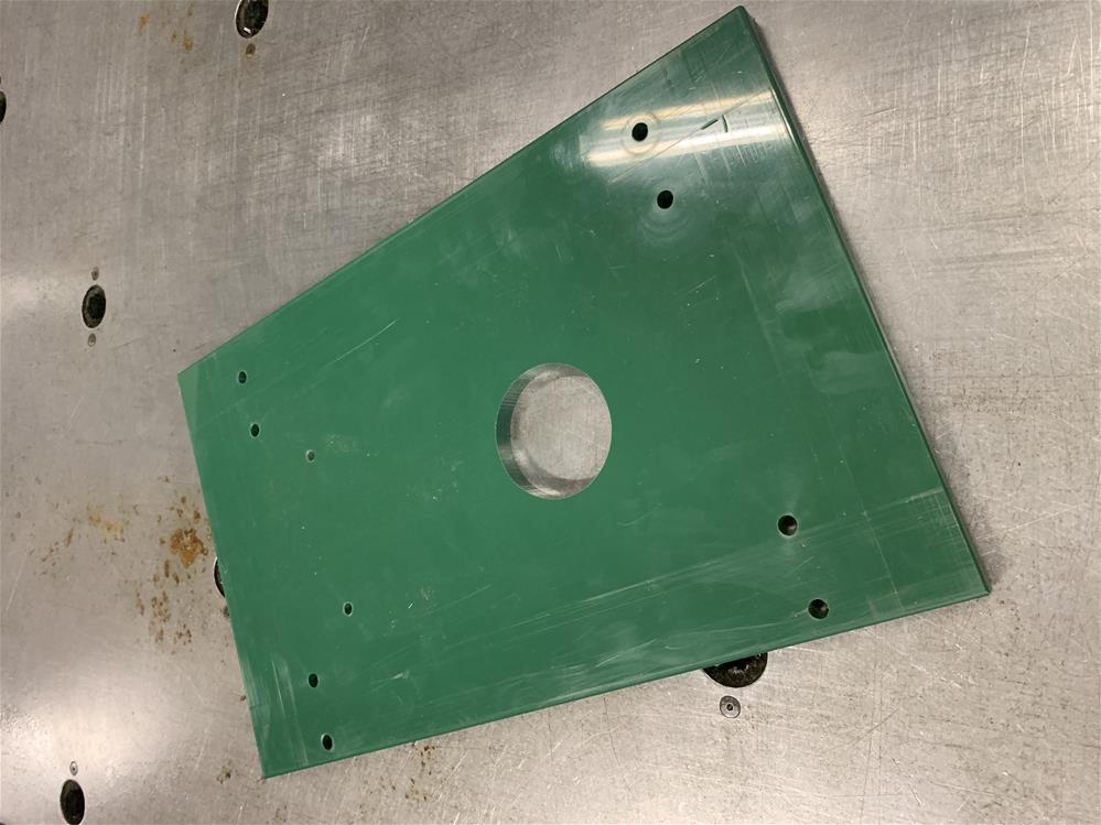 Sågas ner till rätt format.Sedan fräses med fastspänning. Fastsättning enligt Corelfil.Skivorna kantfräses med överhandsfräs. Typ radie 2.